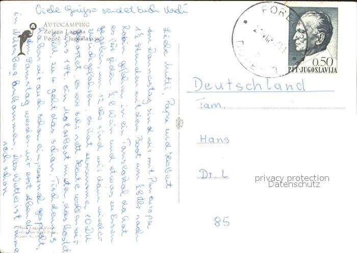 old postcard Porec Autocamping Zelena Laguna Strand postalisch gelaufen Erhaltung siehe scans