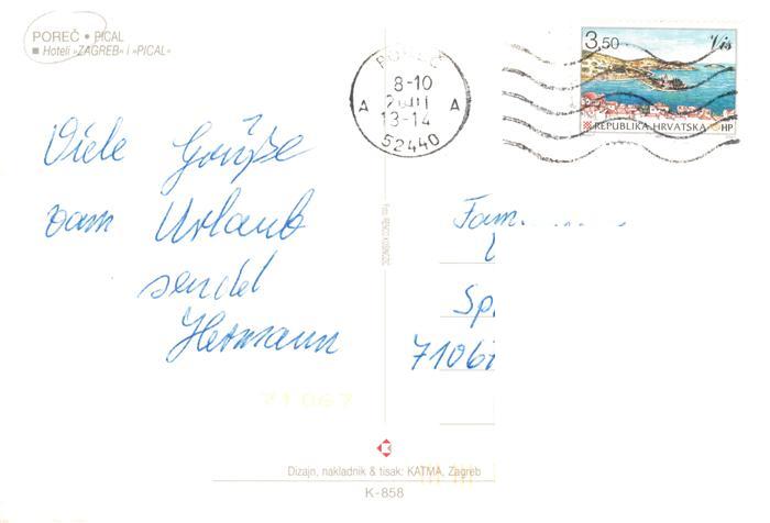 old postcard Porec Croatia Hotel Zagreb Pical Fliegeraufnahme postalisch gelaufen Erhaltung siehe scans [WerneD78]