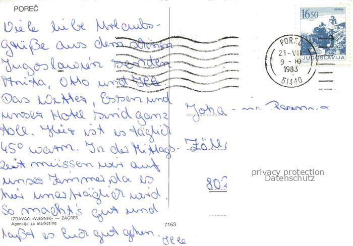 74040419 old postcard Porec Croatia Panorama Kuestenort Halbinsel postalisch gelaufen Fliegeraufnahme Erhaltung siehe scans [FriedD77] KatCode: 11260