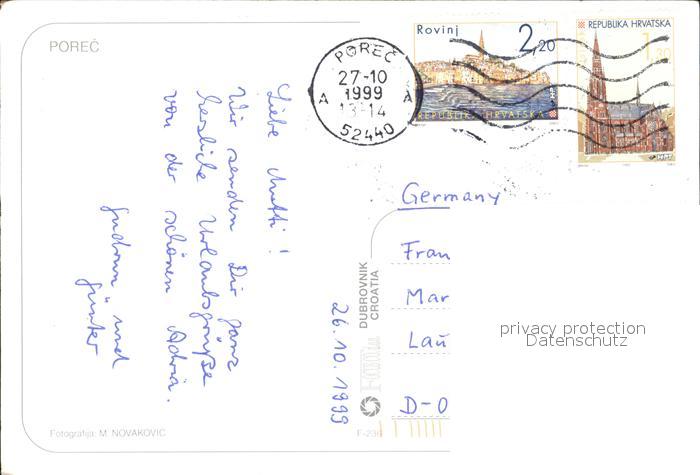 old postcard Porec Fliegeraufnahme postalisch gelaufen Erhaltung siehe scans