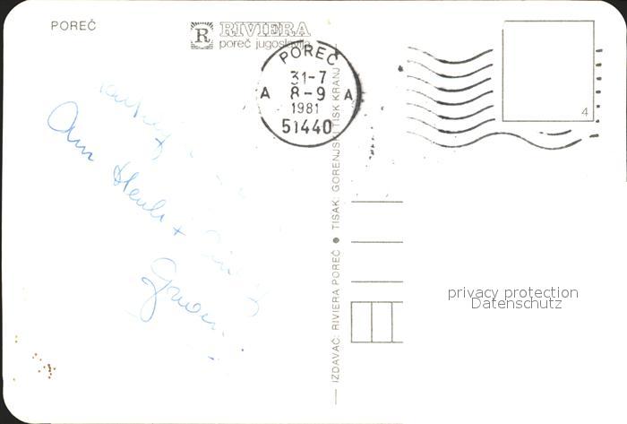 old postcard Porec Fliegeraufnahme postalisch gelaufen Erhaltung siehe scans