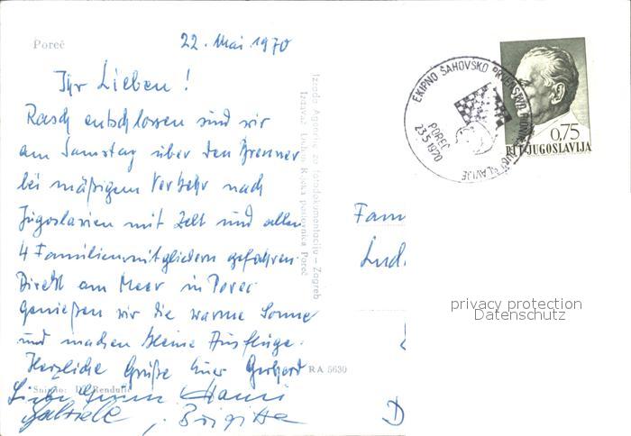 old postcard Porec Fliegeraufnahme postalisch gelaufen Erhaltung siehe scans