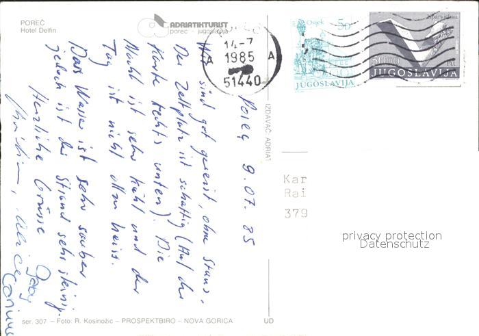 old postcard Porec Fliegeraufnahme Hotel Delfin postalisch gelaufen Erhaltung siehe scans