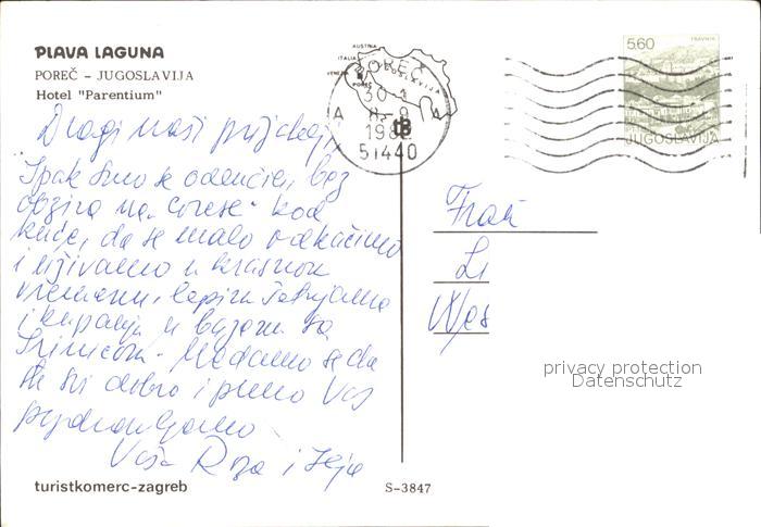 old postcard Porec Fliegeraufnahme Hotel Parentium postalisch gelaufen Erhaltung siehe scans