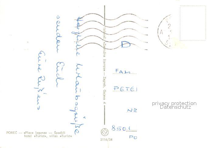 old postcard Porec Fliegeraufnahme Plava laguna Hotel Turist postalisch gelaufen Erhaltung siehe scans [LiesaD40]