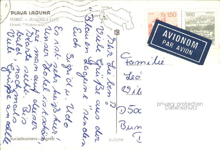 old postcard Porec Hote Materada postalisch gelaufen Erhaltung siehe scans