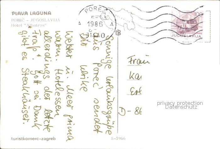 old postcard Porec Hotel Albatros Playa Laguna postalisch gelaufen Erhaltung siehe scans