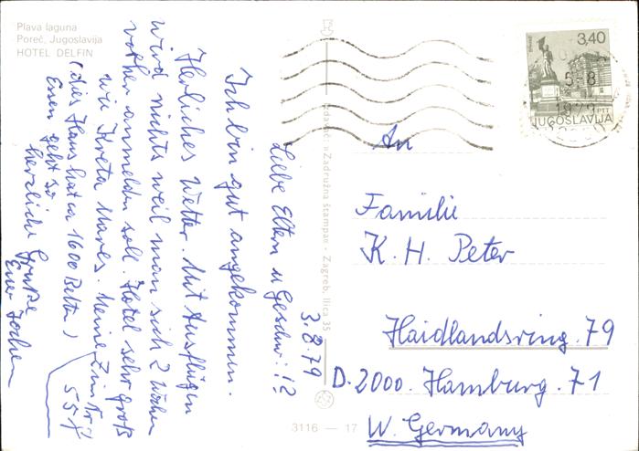 old postcard Porec Hotel Delfin Swimming Pool Plava Laguna postalisch gelaufen Erhaltung siehe scans