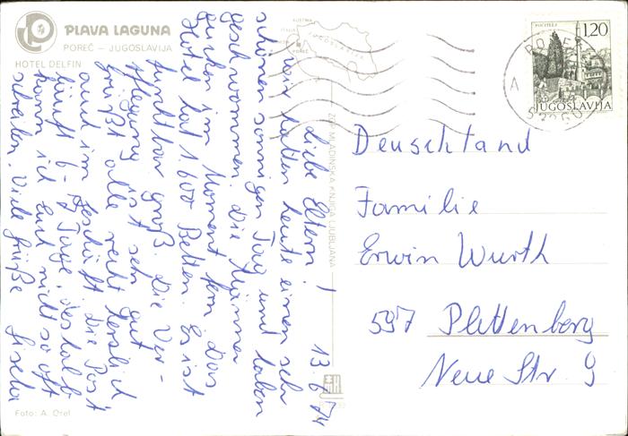 old postcard Porec Hotel Delfin Swimming Pool Plava Laguna Strand Meerblick postalisch gelaufen Erhaltung siehe scans