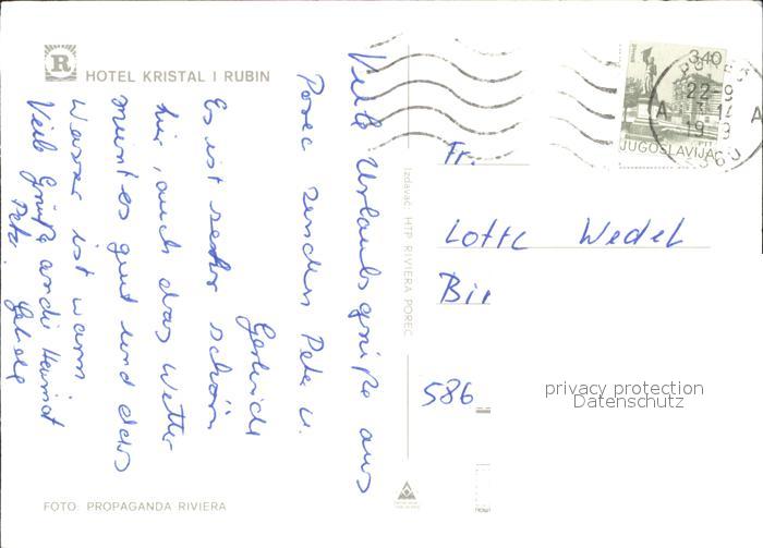 old postcard Porec Hotel Kristal i Rubin postalisch gelaufen Erhaltung siehe scans