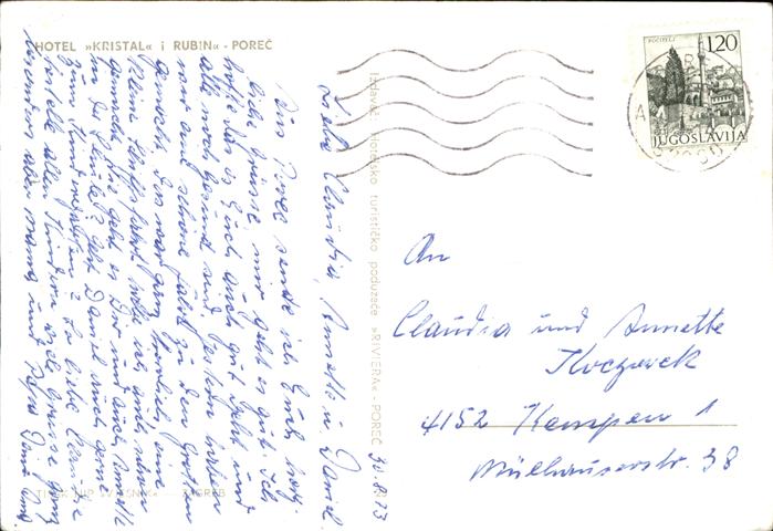 old postcard Porec Hotel Kristal Rubin Swimming Pool Fliegeraufnahme Adria postalisch gelaufen Erhaltung siehe scans
