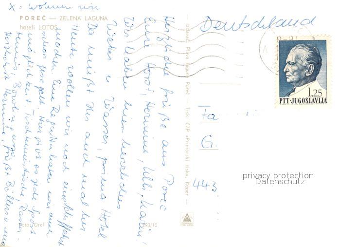 old postcard Porec Hotel Lotos postalisch gelaufen Erhaltung siehe scans [NatalD47]