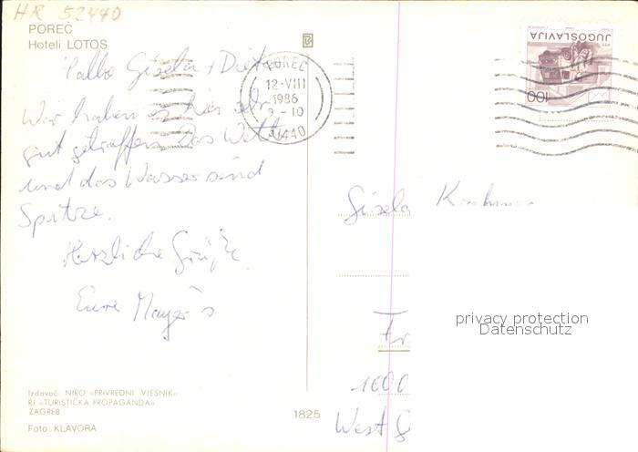 old postcard Porec Hotel Lotos postalisch gelaufen Erhaltung siehe scans [KathaD79]