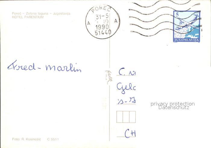 old postcard Porec Hotel Parentium Fliegeraufnahme postalisch gelaufen Erhaltung siehe scans
