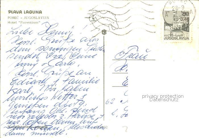 old postcard Porec Hotel Parentium Plava Laguna postalisch gelaufen Erhaltung siehe scans
