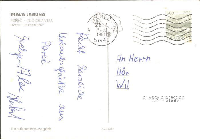 old postcard Porec Hotel Parentium Skulptur Swimming Pool Plava Laguna postalisch gelaufen Erhaltung siehe scans