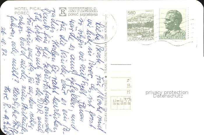 old postcard Porec Hotel Pical postalisch gelaufen Erhaltung siehe scans