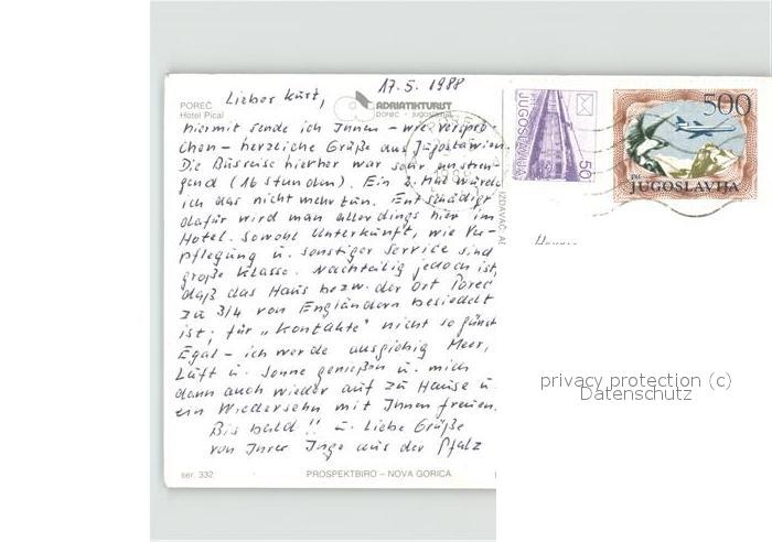 old postcard Porec Hotel Pical Strand Fliegeraufnahme postalisch gelaufen Erhaltung siehe scans