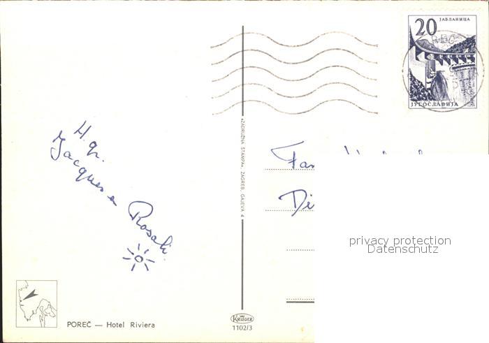 old postcard Porec Hotel Riviera postalisch gelaufen Erhaltung siehe scans