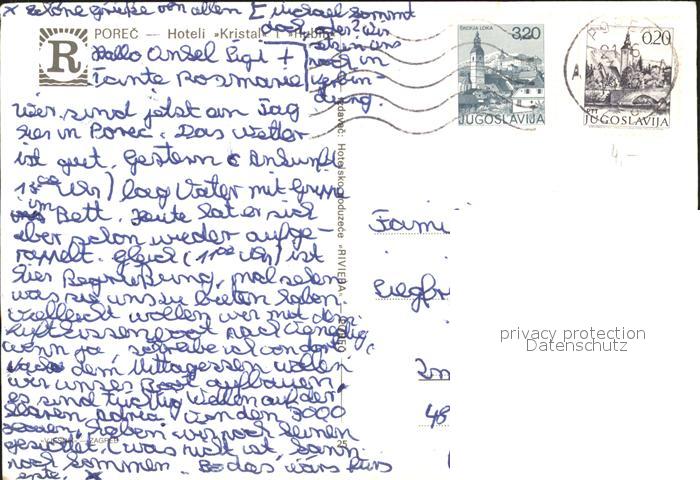 old postcard Porec Hoteli Kristal i Rubin Fliegeraufnahme postalisch gelaufen Erhaltung siehe scans