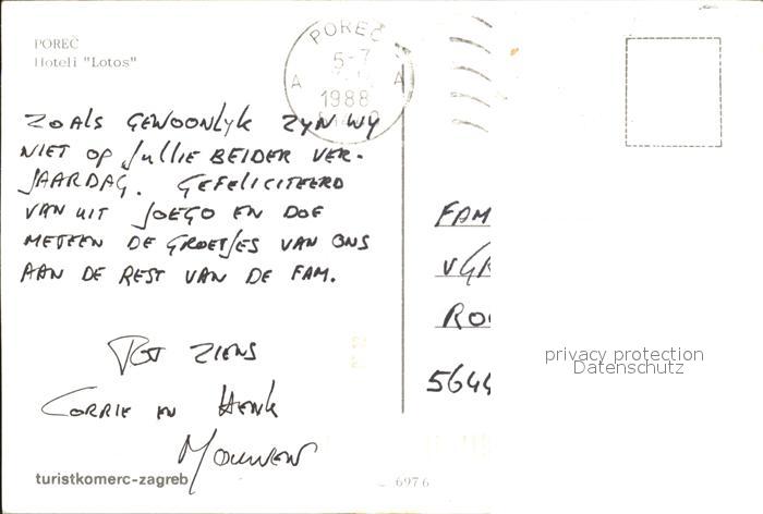 old postcard Porec Hoteli Lotos postalisch gelaufen Erhaltung siehe scans