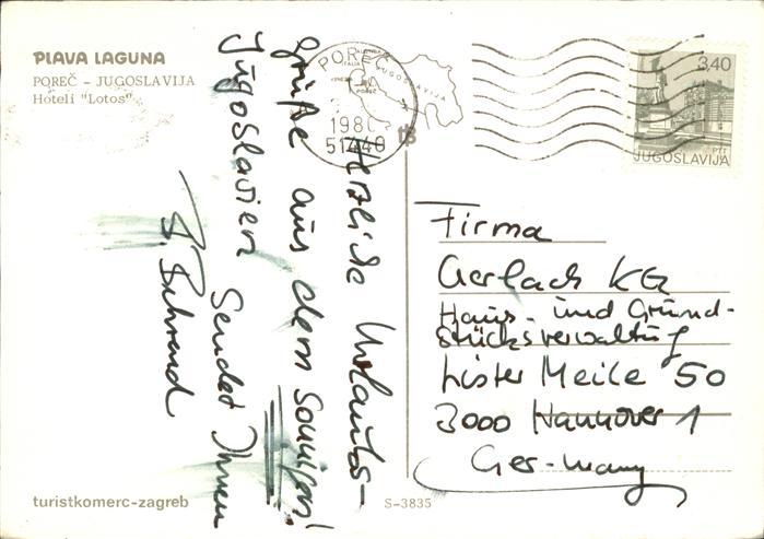 old postcard Porec Hoteli Lotos Plava Laguna Strand postalisch gelaufen Erhaltung siehe scans