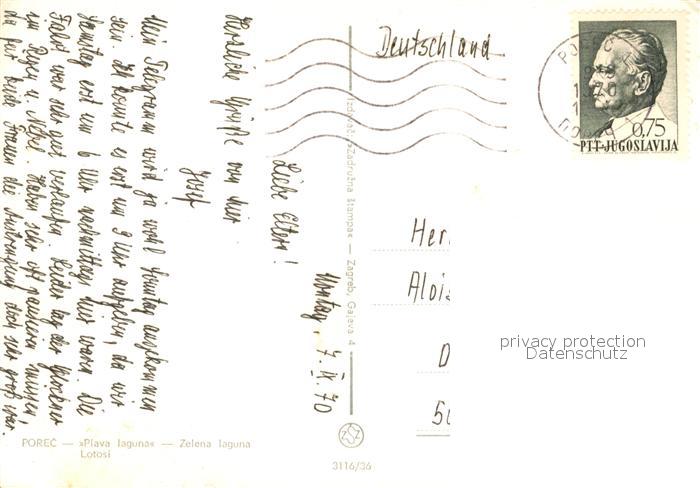 old postcard Porec Plava laguna Lotosi postalisch gelaufen Erhaltung siehe scans [WerneD78]