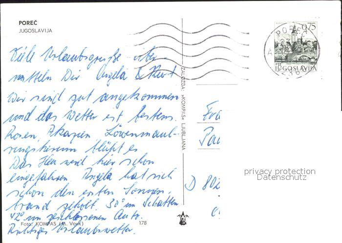 old postcard Porec Strandleben postalisch gelaufen Erhaltung siehe scans