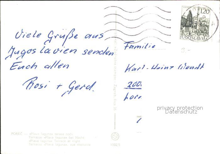 old postcard Porec Terrasse Plava laguna bei Nacht Restaurant postalisch gelaufen Erhaltung siehe scans