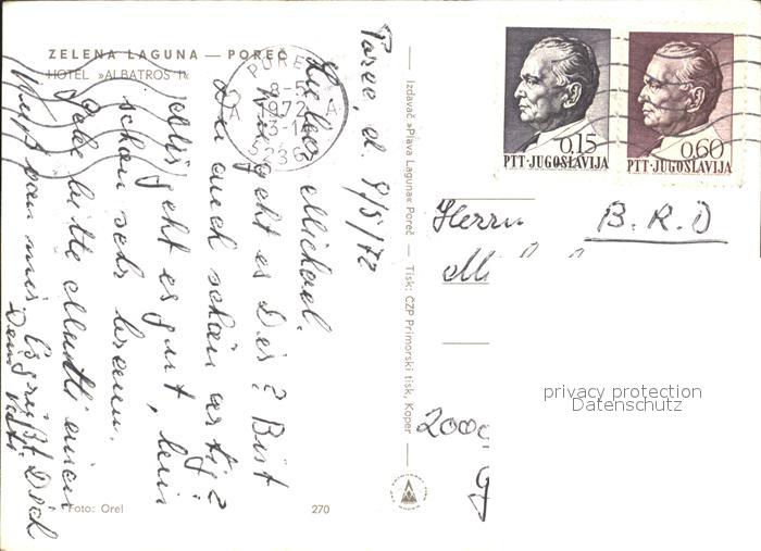 old postcard Porec Zelena Laguna Hotel Albatros postalisch gelaufen Erhaltung siehe scans