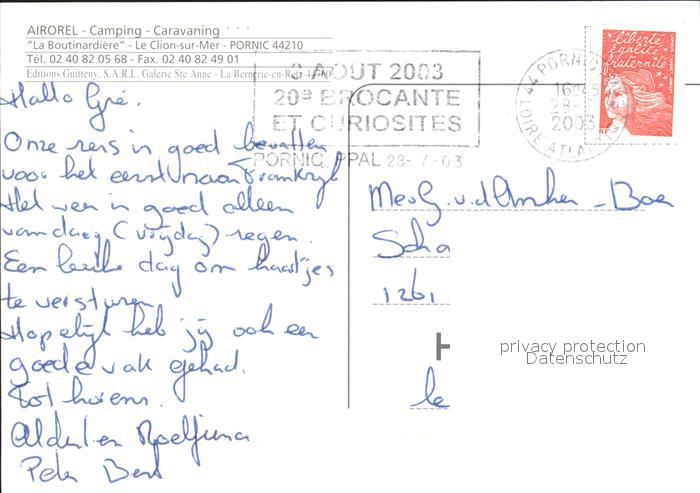 12038145 carte postale Pornic Airorel Camping Caravaning La Boutinardiere postalisch gelaufen Erhaltung siehe scans KatCode: 11170044344131