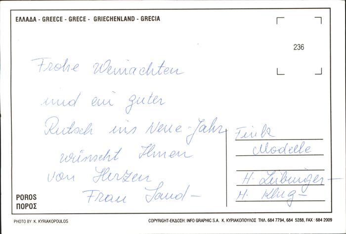 Poros Gesamtansicht Blick vom Meer bei Nacht postalisch nicht gelaufen Erhaltung siehe scans