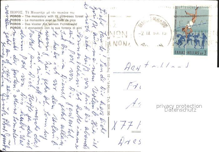 old postcard Poros Kloster Fichtenwald postalisch gelaufen Erhaltung siehe scans