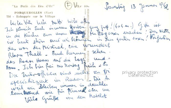 13689185 Porquerolles Echappée sur le village postalisch nicht gelaufen Erhaltung siehe scans [FriedD77] Frie Katcode 11170083283069