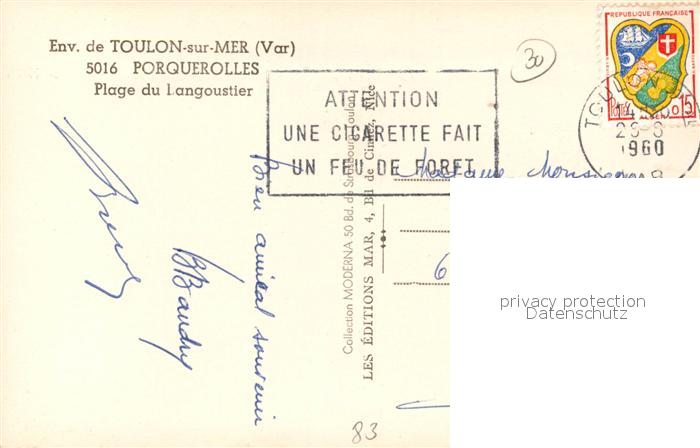 13493852 carte postale Porquerolles Plage du Langoustier postalisch gelaufen Erhaltung siehe scans [WerneD78] KatCode: 11170083283069