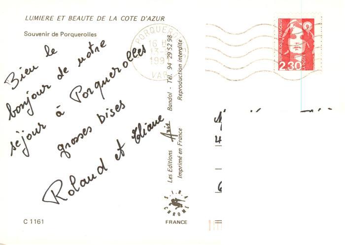 13946545 Porquerolles Souvenir de Porquerolles postalisch gelaufen Erhaltung siehe scans [WerneD78] carte postale Wern Katcode 11170083283069