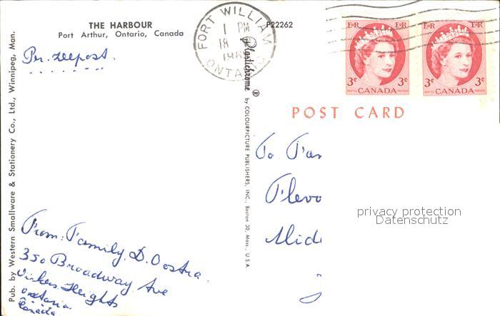 old postcard Port Arthur Ontario The Harbour postalisch gelaufen Erhaltung siehe scans