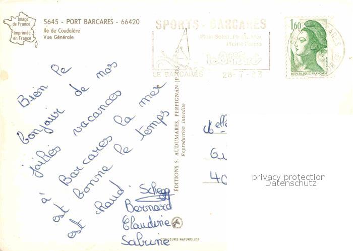 12909903 carte postale Port Barcares Ile de Coudalere vue aerienne postalisch gelaufen Erhaltung siehe scans [FriedD77] KatCode: 11170066266017