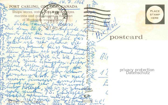 74091680 old postcard Port Carling Ontario Canada Vogelansicht Oben postalisch gelaufen Erhaltung siehe scans [IrynaD87] KatCode: 14110