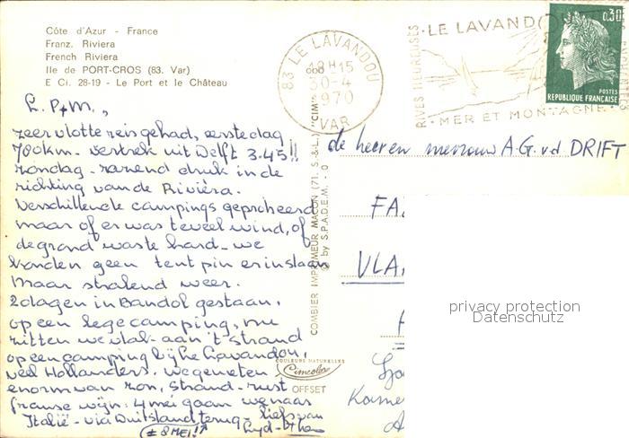 12592862 carte postale Port-Cros Port et le Chateau postalisch gelaufen Erhaltung siehe scans [NatalD47] KatCode: 11170083283069