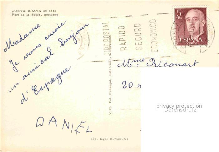 old postcard Port de la Selva nocturno postalisch gelaufen Erhaltung siehe scans [WerneD78]