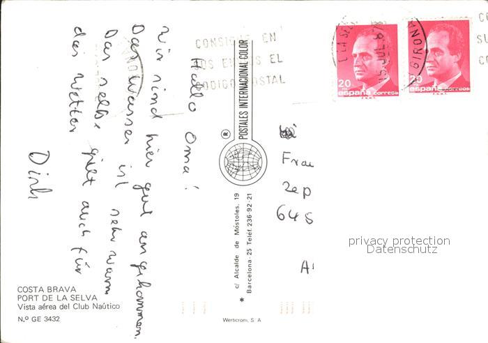old postcard Port de la Selva Vista aerea del Club Nautico Hafen postalisch gelaufen Erhaltung siehe scans