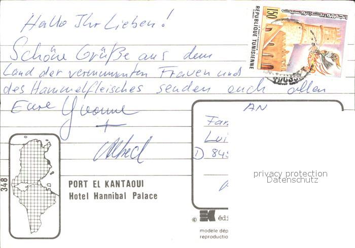 alte Postkarte Port El-Kantaoui Hotel Hannibal Palace postalisch gelaufen Erhaltung siehe scans