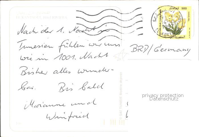 alte Postkarte Port El-Kantaoui Hotel Riviera postalisch gelaufen Erhaltung siehe scans