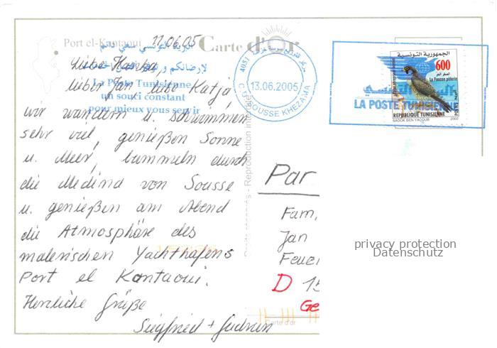 74040378 old postcard Port El-Kantaoui Tunesie Hafen postalisch gelaufen Fliegeraufnahme Erhaltung siehe scans [FriedD77] KatCode: 18520