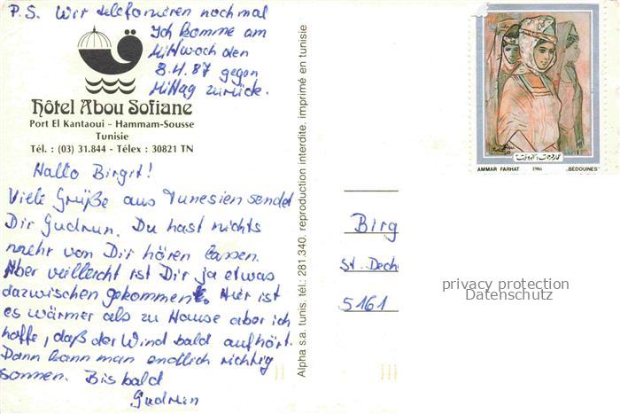 74005902 old postcard Port El-Kantaoui Tunesie Hotel Abou Sofiane Pool postalisch gelaufen Erhaltung siehe scans [WerneD78] KatCode: 18520