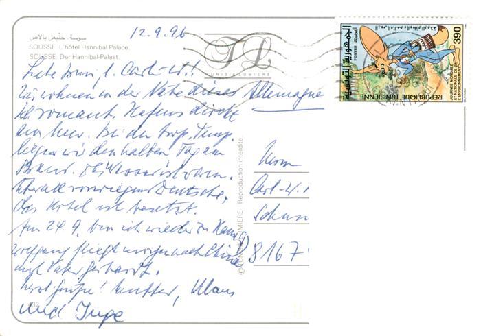 73946164 old postcard Port El-Kantaoui Tunesie Hotel Hannibal Palace Swimming Pool Yachthafen postalisch gelaufen Erhaltung siehe scans [FriedD77] KatCode: 18520
