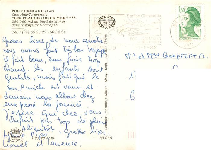 13903263 Port Grimaud 83 Var Camping Caravaning Les Prairies de la Mer postalisch gelaufen Erhaltung siehe scans [FriedD77] carte postale Frie Katcode 11170083183068