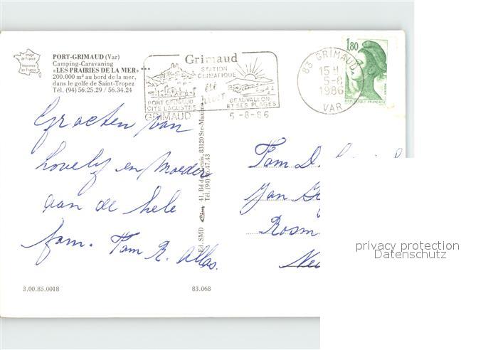 12225326 carte postale Port Grimaud Camping Caravaning Les Prairies de la Mer postalisch gelaufen Erhaltung siehe scans KatCode: 11170083183068