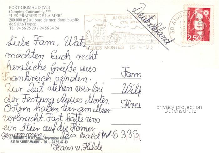 13270269 carte postale Port Grimaud Camping-Caravaning Les Prairies de la Mer Vue Aerienne postalisch gelaufen Erhaltung siehe scans [PaolaD17] KatCode: 11170083183068